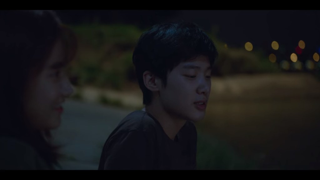 The second is a scene that happens after Gyu Ri gets the money from her parents. She meets up with Ji Soo and the two of them sit by the water, looking at the city lights. She asks him to fly to Australia with her and they fondly daydream about a possible future for a bit. But he ultimately turns her down.