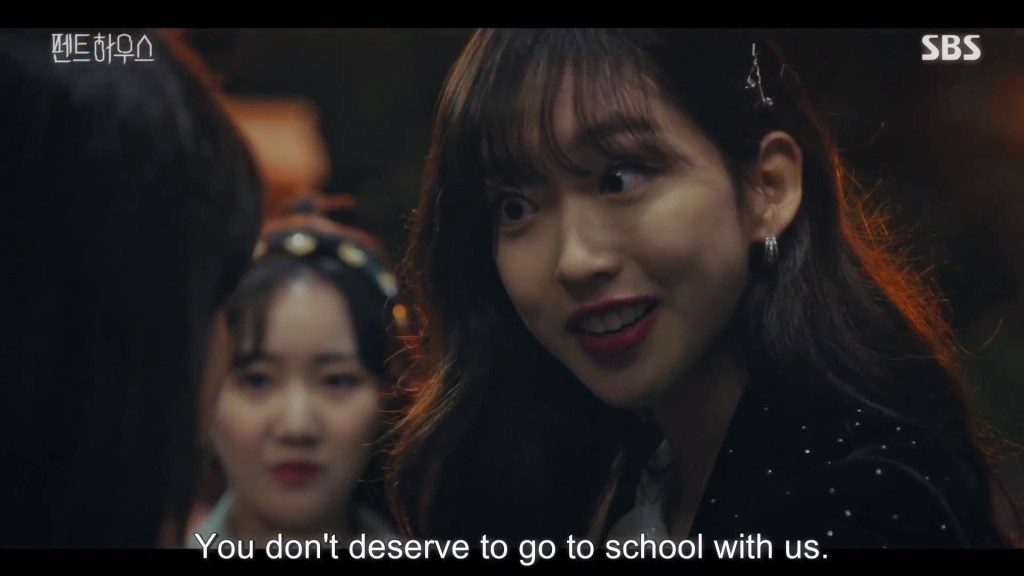 We know Yoon Hee has a bad history with a particular member of the penthouse, esteemed vocal coach Cheon Seo Jin, played by Kim So Yeon. Yoon Hee’s daughter, Ro Na, auditions for the prestigious arts school I was talking about and guess who one of the judges is? Seo Jin — who of course makes sure Ro Na doesn’t get in. Somehow, I doubt Yoon Hee is going to let that slide.